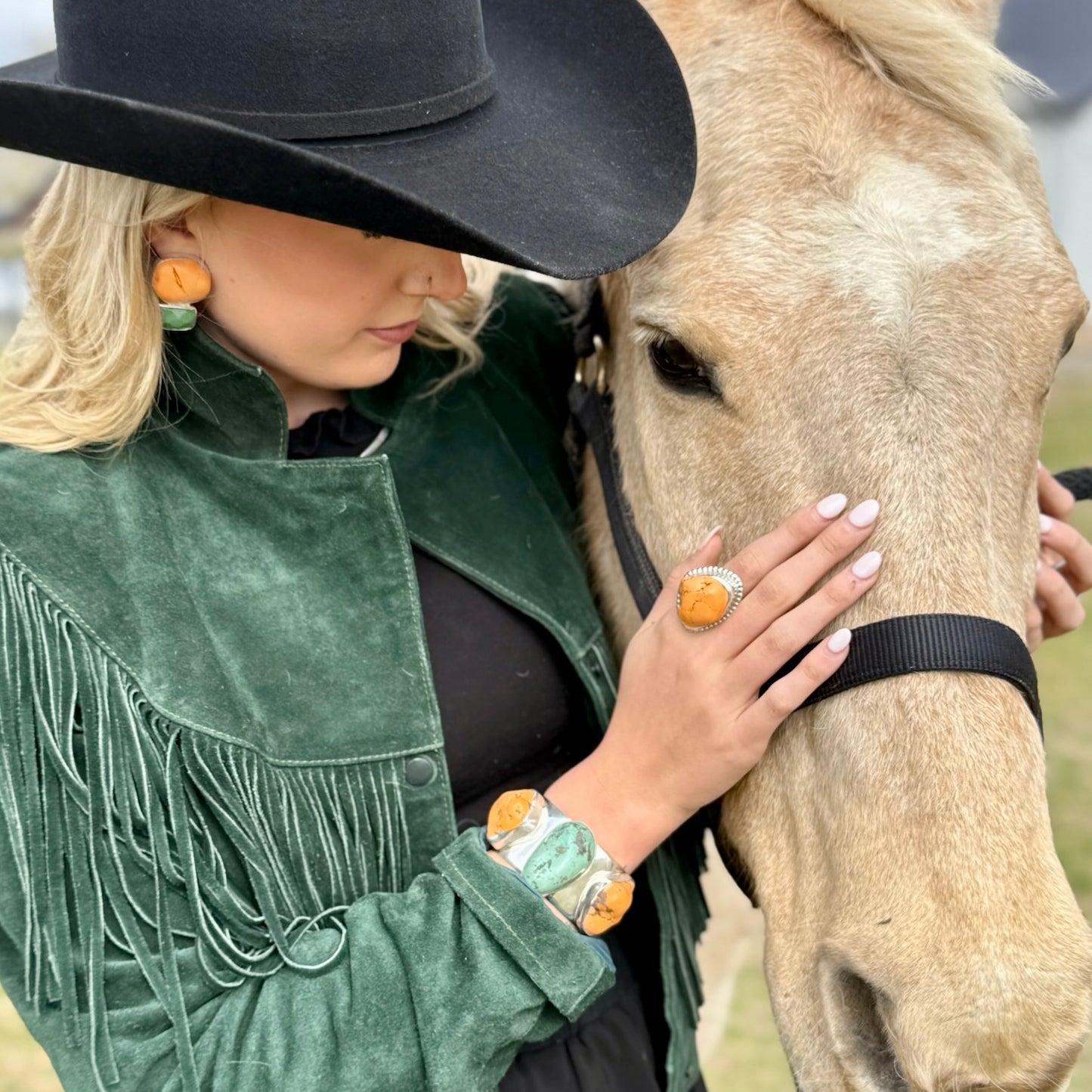 This Exquisite Triple Turquoise Cuff mounted on Sterling Silver is a Show Stopper!