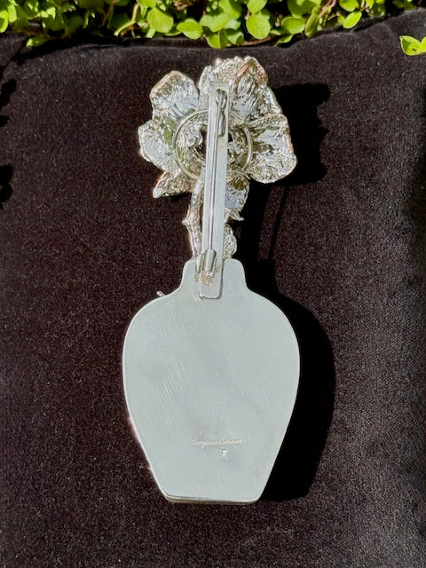 Add Rhinestone Flower and Carved Vase Brooch to the cart
