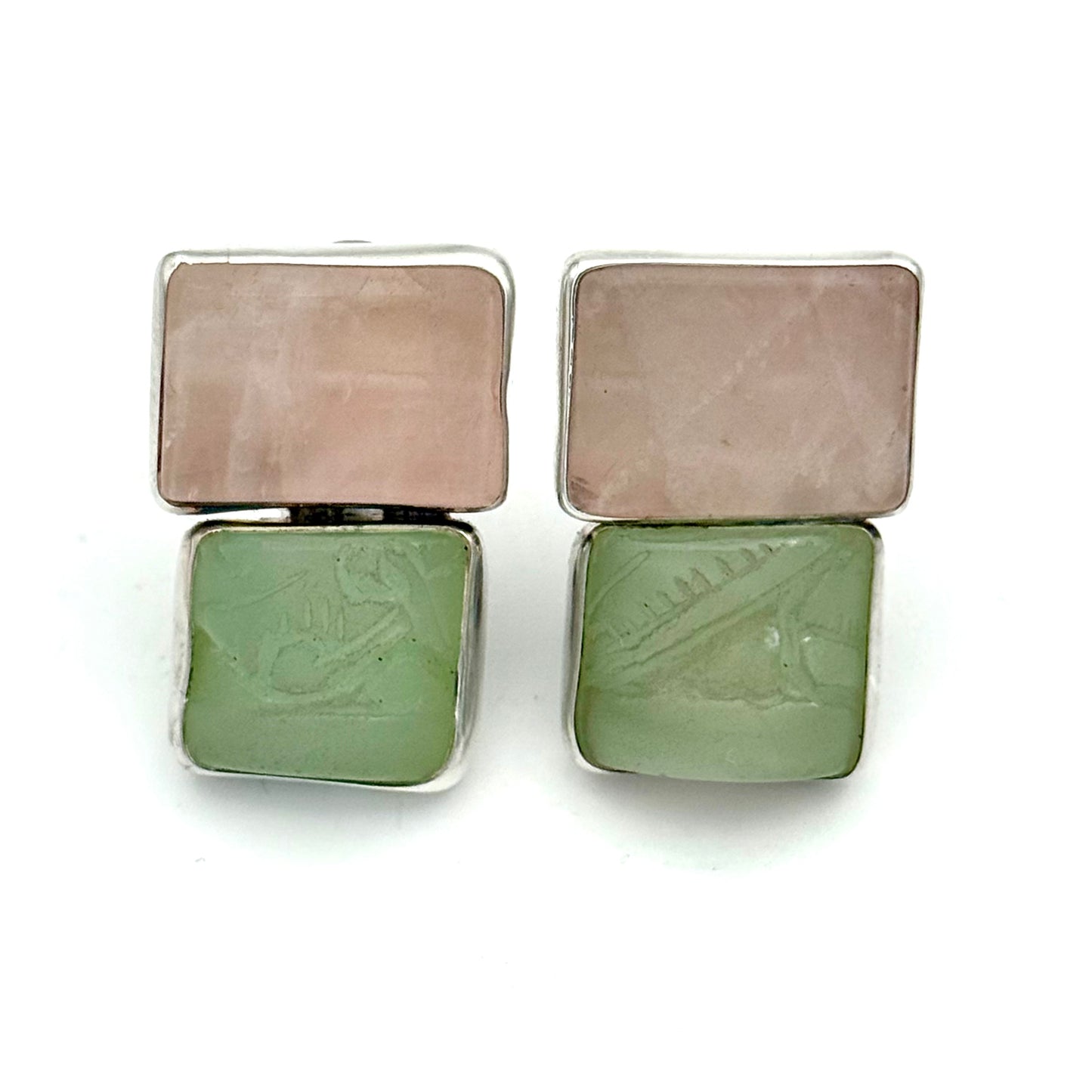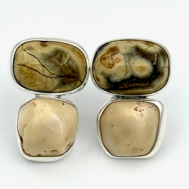Leopard Skin Jasper and Mossy Quarts Earrings