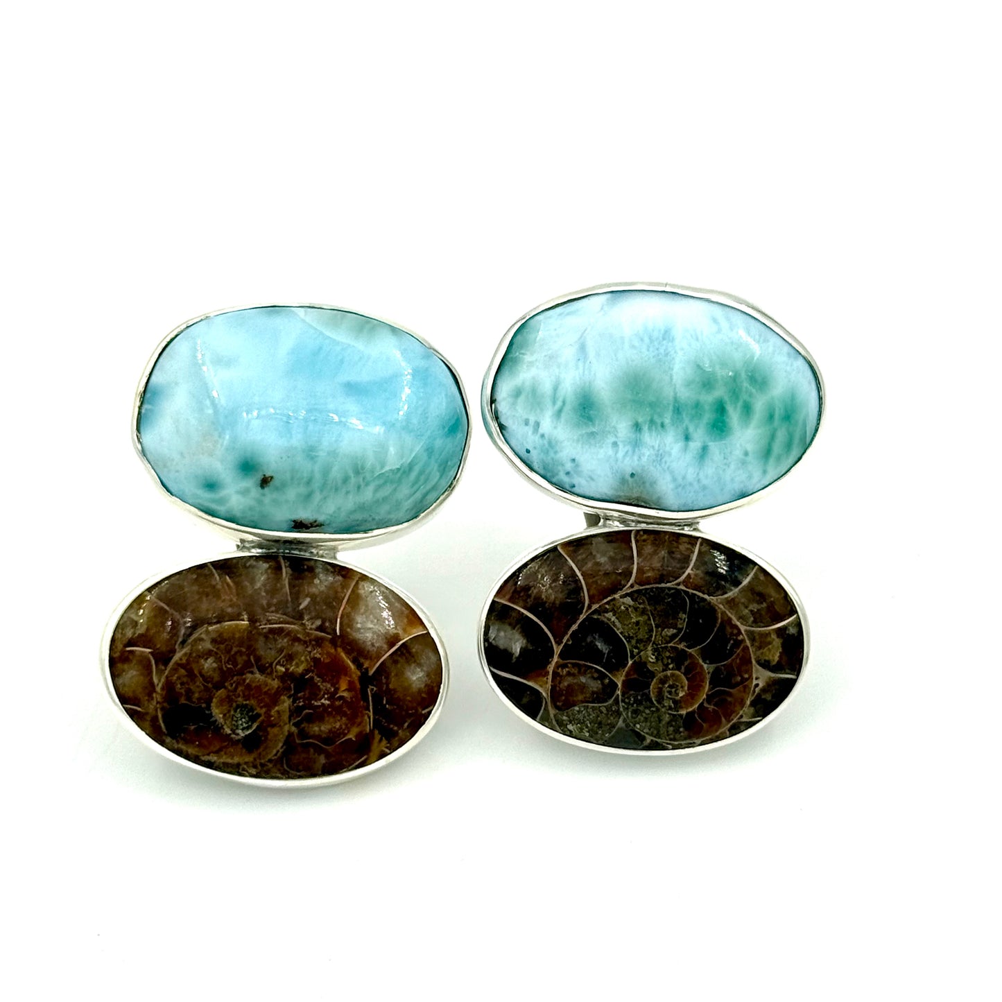 Add Larimar and Ammonite Earrings to the cart