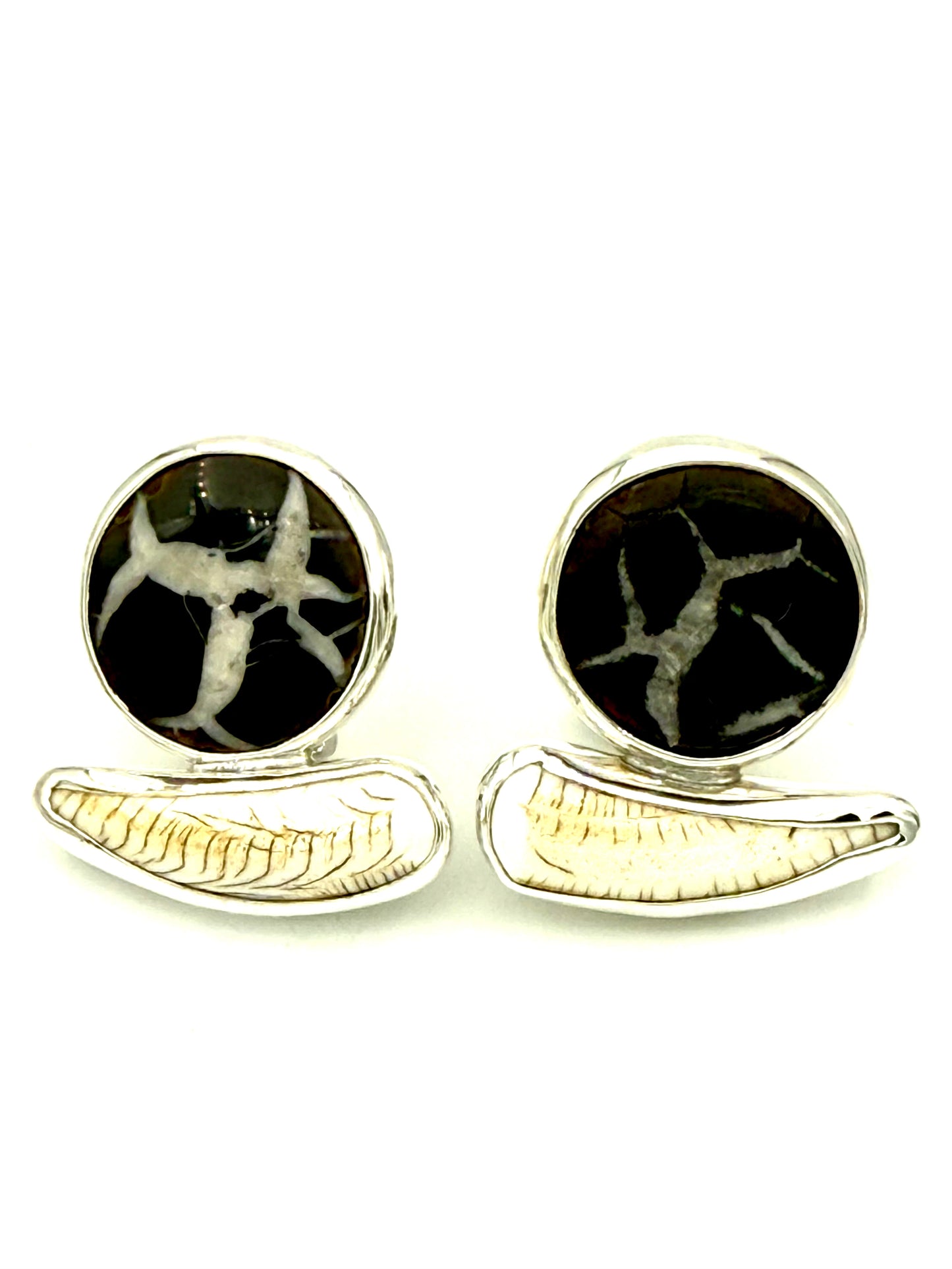 Septarian Nodule and Bone Earrings