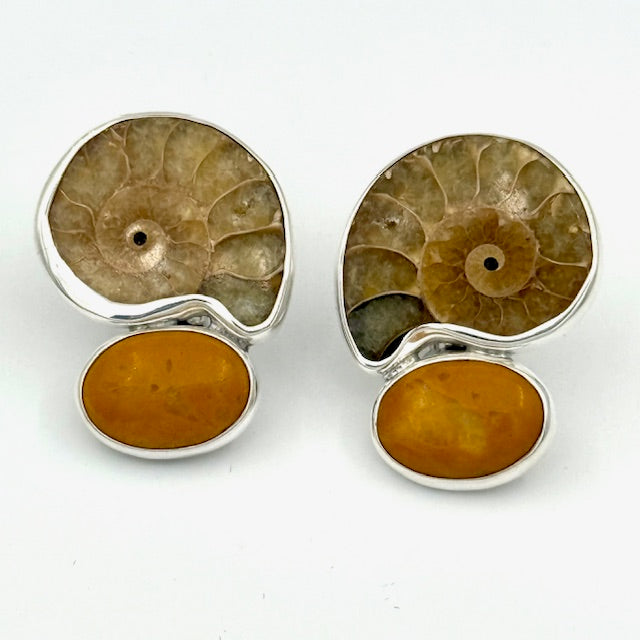 Ammonite and Yellow Jade Earrings