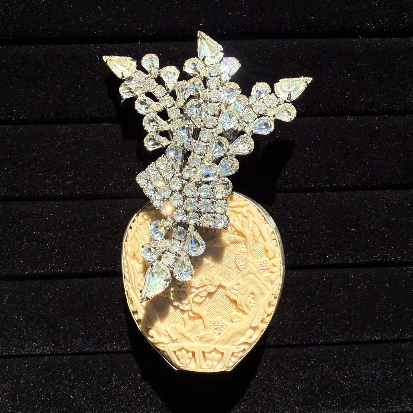 Vintage Rhinestone Pin paired with Carved Vase set in Sterling Silver to create a one of a kind Brooch
