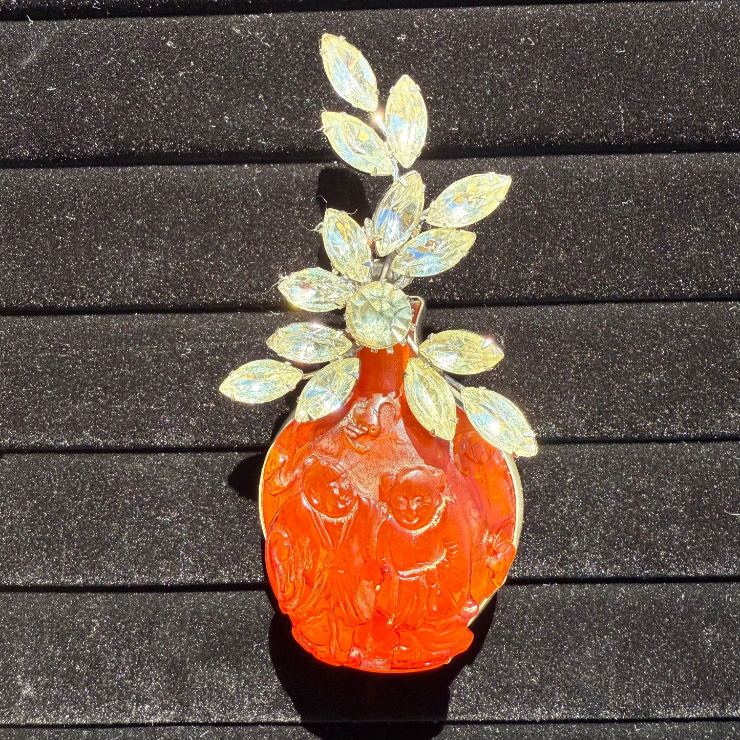 Vintage Rhinestone Pin paired with a Carved Vase Pendant in Sterling Silver to create a one of a kind Brooch.